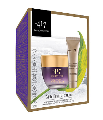 - 417 - это мир удивительных впечатлений и незабываемых ощущений; это красота, которую можно почувствовать! Эффективная программа ухода для красоты и молодости кожи! Ночная антивозрастная сыворотка для лица "Время вспять" глобального действия - это концентрированная сыворотка, которая быстро проникает в кожу и оказывает глобальное антивозрастное действие: заметно сокращает размер и глубину морщин, восстанавливает внутренний каркас и повышает плотность кожи, наполняя кожу изнутри, улучшает текстуру кожи и выравнивает тон. Ночной восстанавливающий крем для полного преображения кожи - это средство для глубокого увлажнения и омоложения кожи комплексного действия. Помогает уменьшить первые признаки возрастных изменений и проявленные морщины, возвращает здоровый и сияющий тон. Веганские формулы с высоким содержанием ингредиентов натурального происхождения. Испытайте уникальный опыт взаимодействия с дарами Мертвого моря!